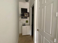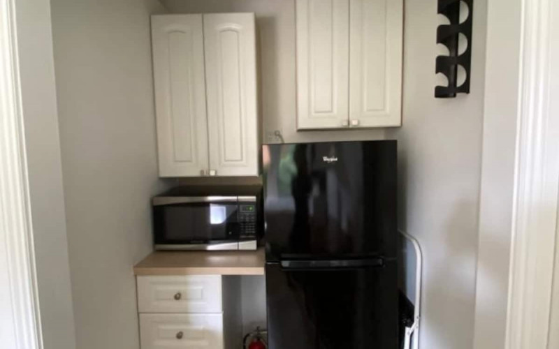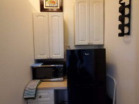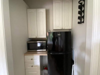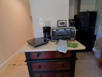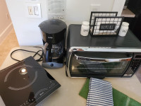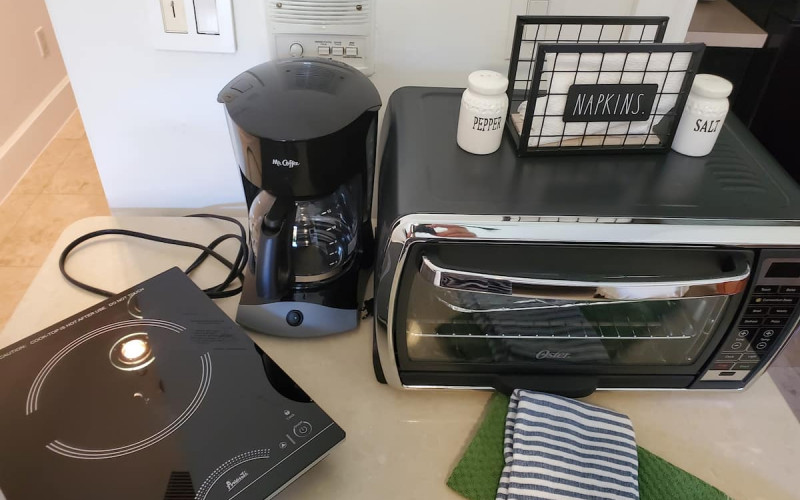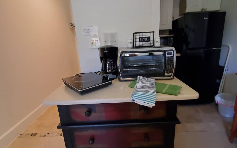 Unit has complete kitchen including induction stovetop, full size refrigerator, toaster oven, coffee maker etc.