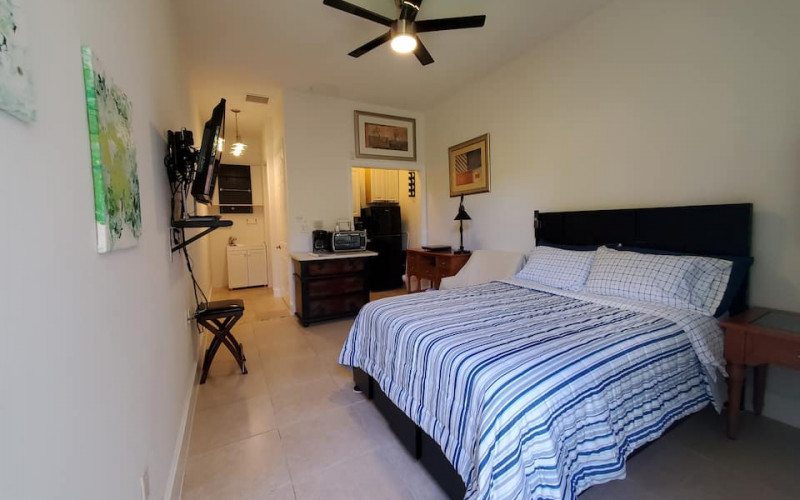 The loft is located in Plantation and is fully equipped. King size bed, couch, dining table, oversized bathroom with sit-in shower. Balcony area. Dedicated a/c, Wi-Fi & cable TV.