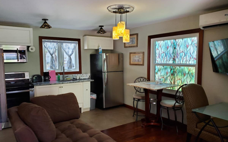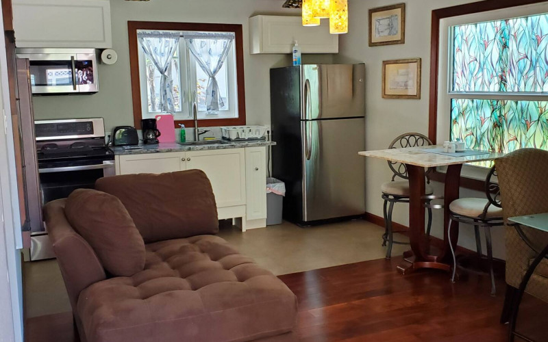 The unit is in St. Pete and comes with everything you need to spend some time away. King size bed, couch, dining table, bathroom with shower, dedicated a/c, Wi-Fi & TV(Netflix, Hulu, Disney+ & ESPN+). Full kitchen including stove/oven, refrigerator & coffee maker. Front porch w/ 2 chairs.